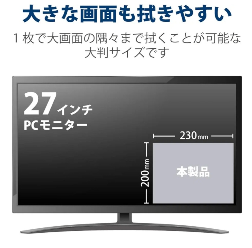 PCモニター:大きな画面も簡単に拭けるサイズ感が便利。