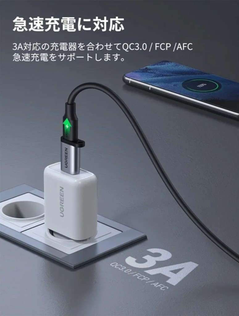 このUGREENのアダプタは、まず作りがしっかりしていて安心感があります。充電も転送もスムーズで、特に車内での使用時にとても便利です。