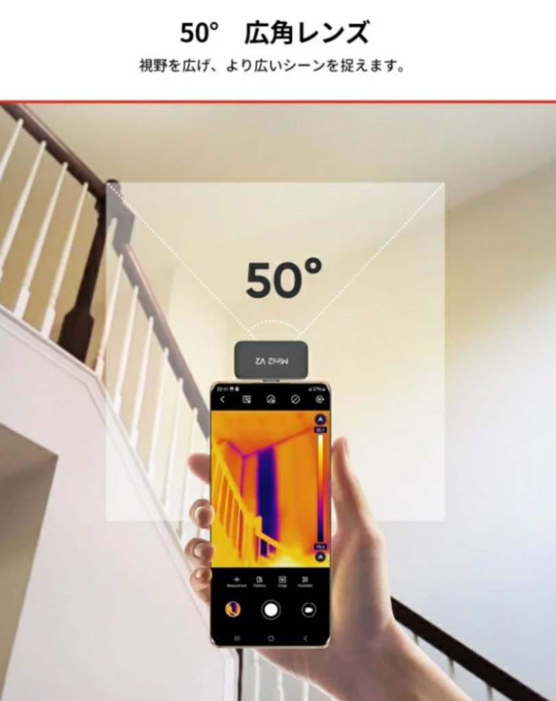 HIKMICRO Mini2 V2は、高解像度のサーモセンサーを搭載しており、温度変化を細かく捉えます。
