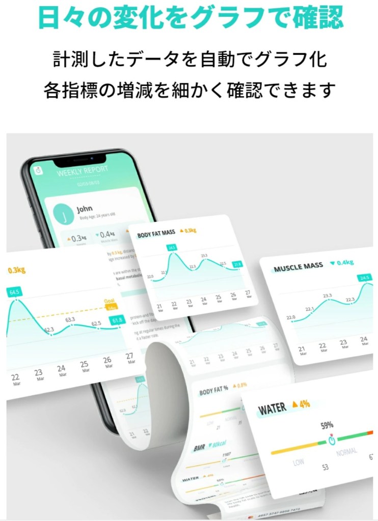 - 一般的な体重計では測定できないデータを取得できるため、より詳細な健康管理が可能。