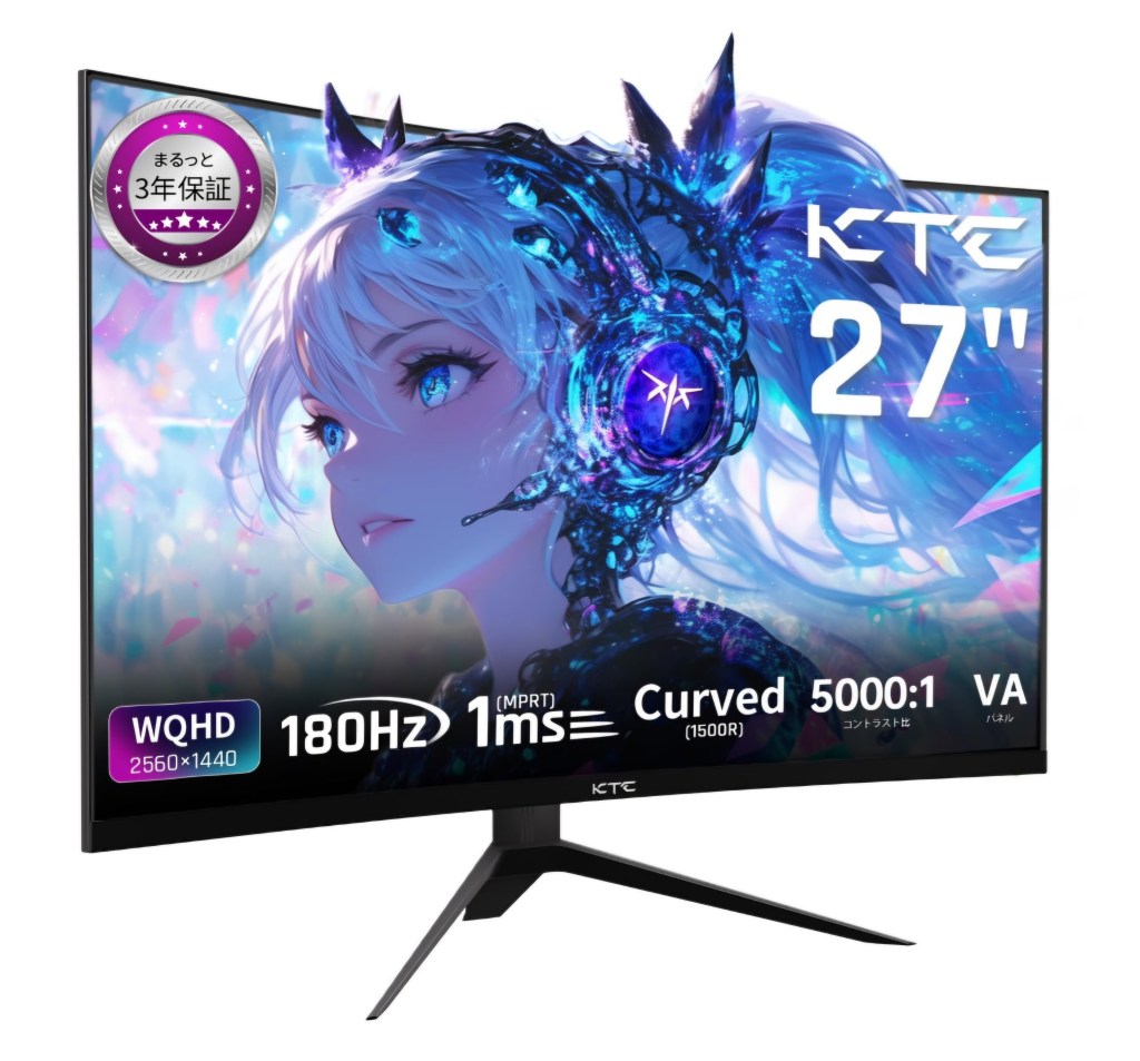 ゲームや映像の世界にどっぷり浸れる【KTC 27インチ湾曲ゲーミングモニター】をご紹介します!このモニターは、WQHD (2560×1440) 解像度・180Hzの高リフレッシュレート・1msの高速応答速度を兼ね備え、まさにゲーマーの理想を叶える一台です。✨