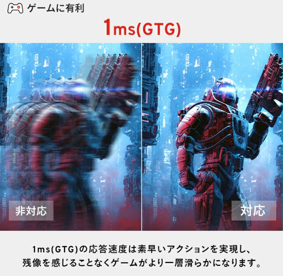 ⏩ 1msの高速応答 & Fast IPSパネル搭載