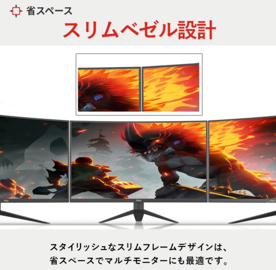 Pixio PX278WAVEは、WQHD解像度&180Hzの滑らか映像、高速応答、スタイリッシュなデザインと、ゲーマーにとって嬉しいポイントが満載!特に「モンハンワールド」のような美しいグラフィックのゲームをプレイするなら、映像美を最大限に引き出せるこのモニターは最適な選択肢のひとつです。