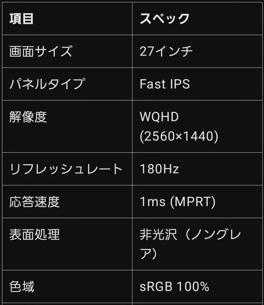 ✅ WQHD&180Hzで高画質&滑らかな映像を楽しみたい人