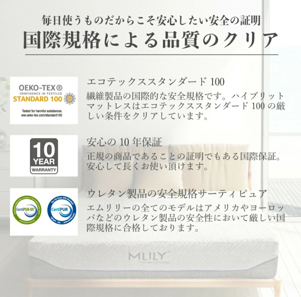✅ MLILY エムリリー ハイブリッドマットレス ML01の特徴