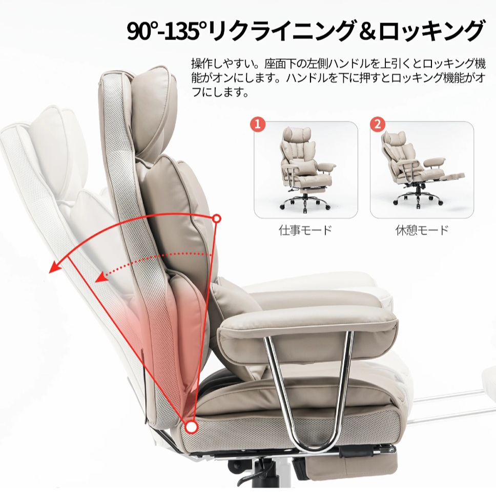 ✅ 135°リクライニングで、好きな角度でリラックス!
