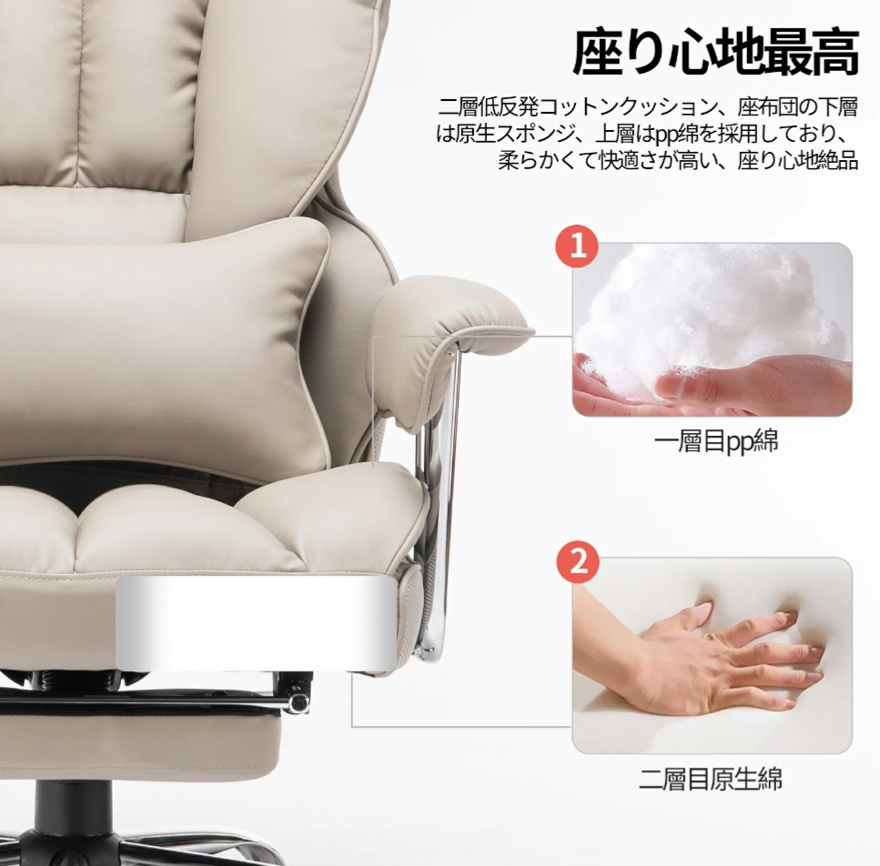 ✅ 高密度クッションで長時間座っても疲れにくい!