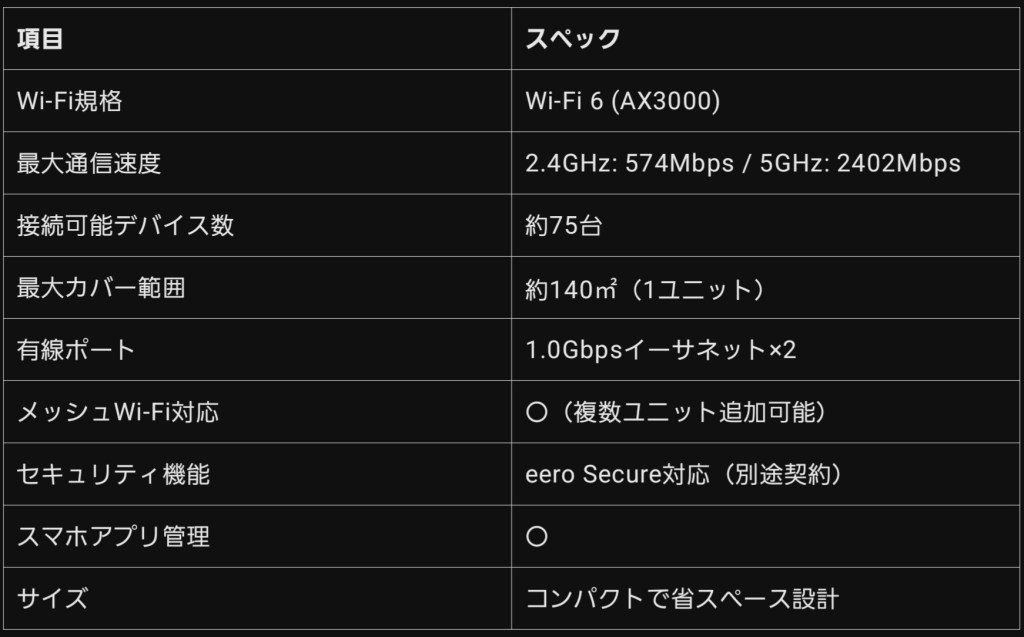 📊 Amazon eero 6+ のスペック一覧
