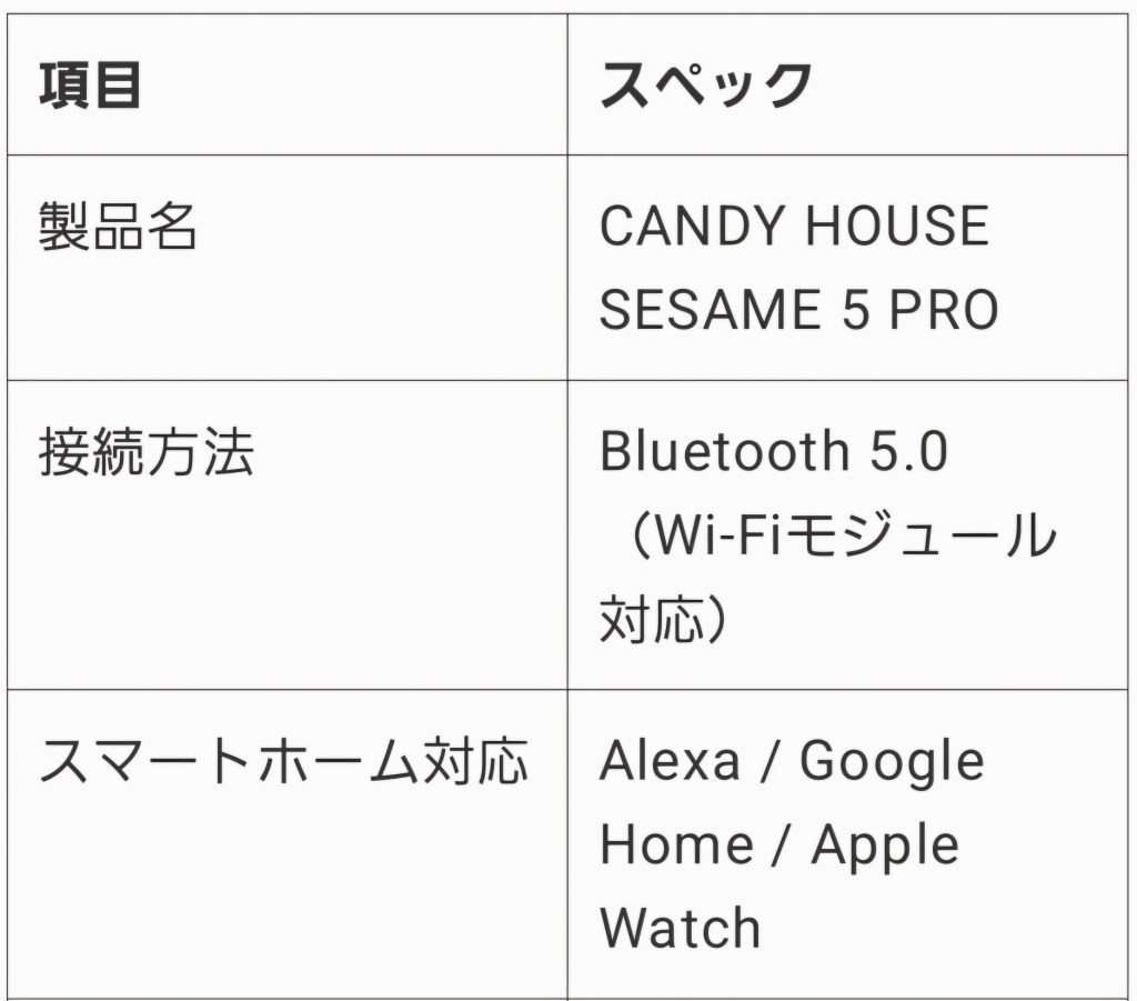 📊 CANDY HOUSE SESAME 5 PRO のスペック一覧