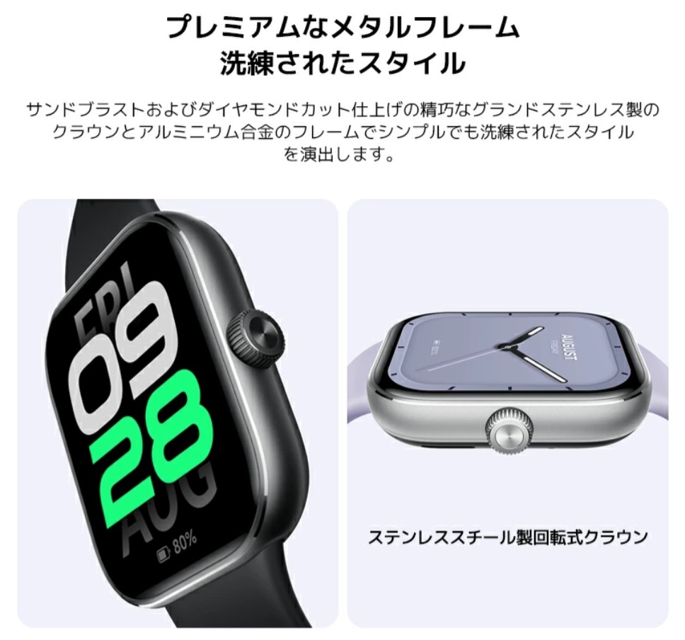 また、ベゼル(縁)が細くスタイリッシュなデザインなので、カジュアルにもフォーマルにもマッチするスマートウォッチです⌚✨