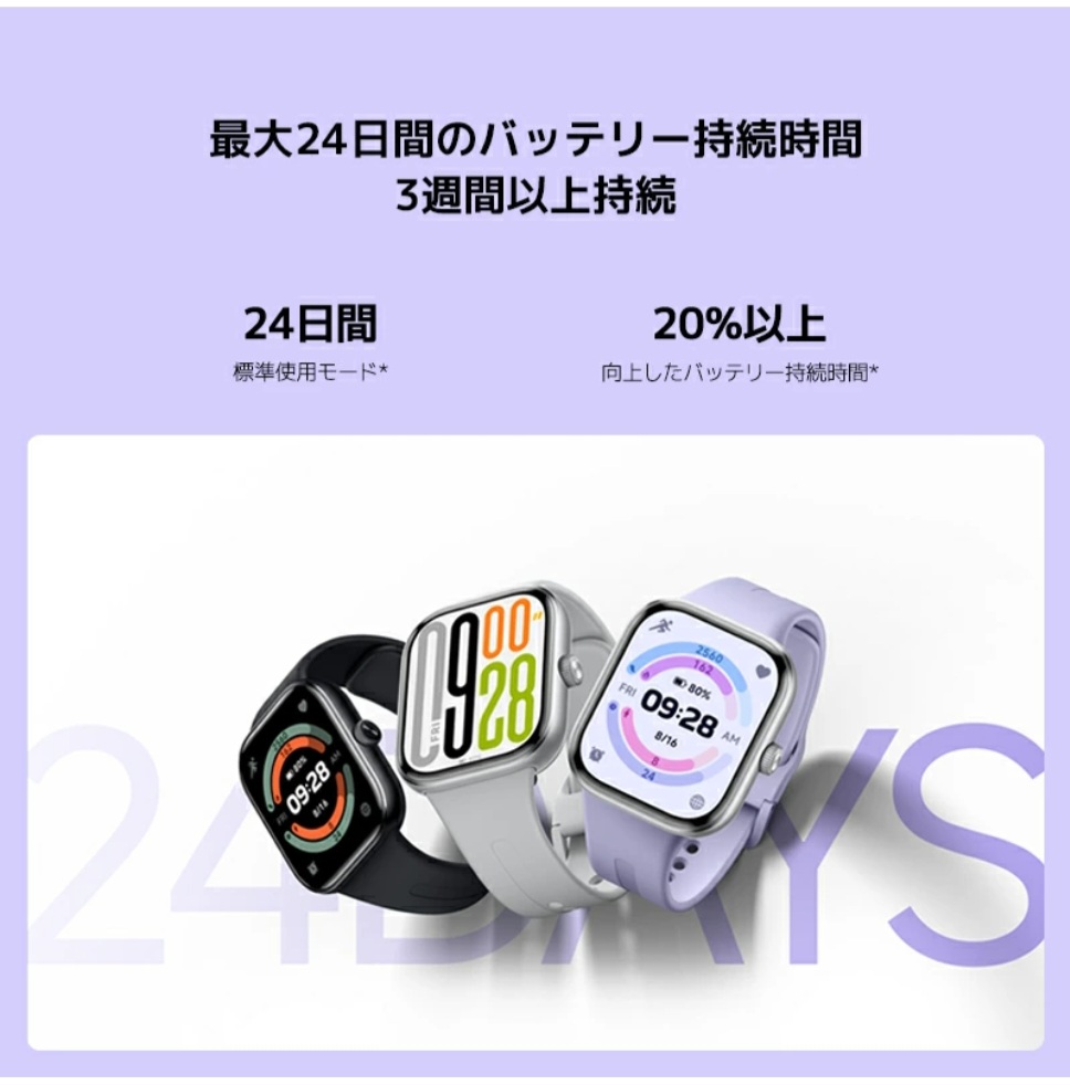 Redmi Watch 5は、一度の充電で最大12日間使用可能なロングバッテリーを搭載⚡