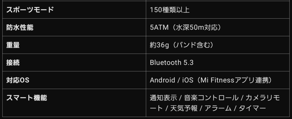 ✅ Redmi Watch 5 のスペック一覧