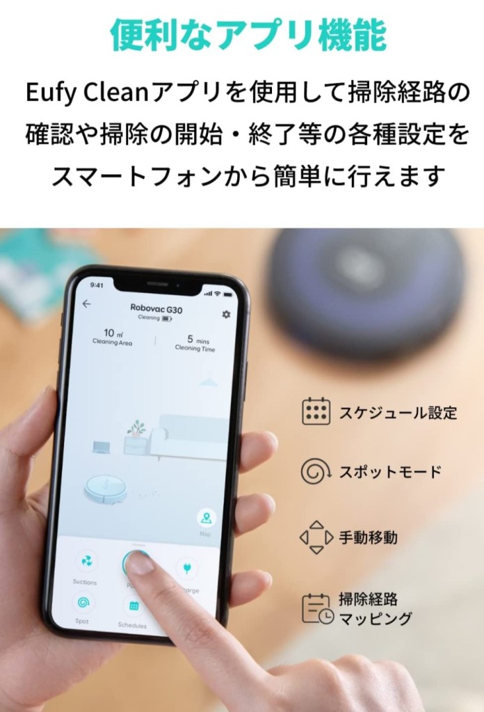 スマホ操作や自動充電など、便利機能が満載 なので、掃除の手間をグッと減らせますよ!