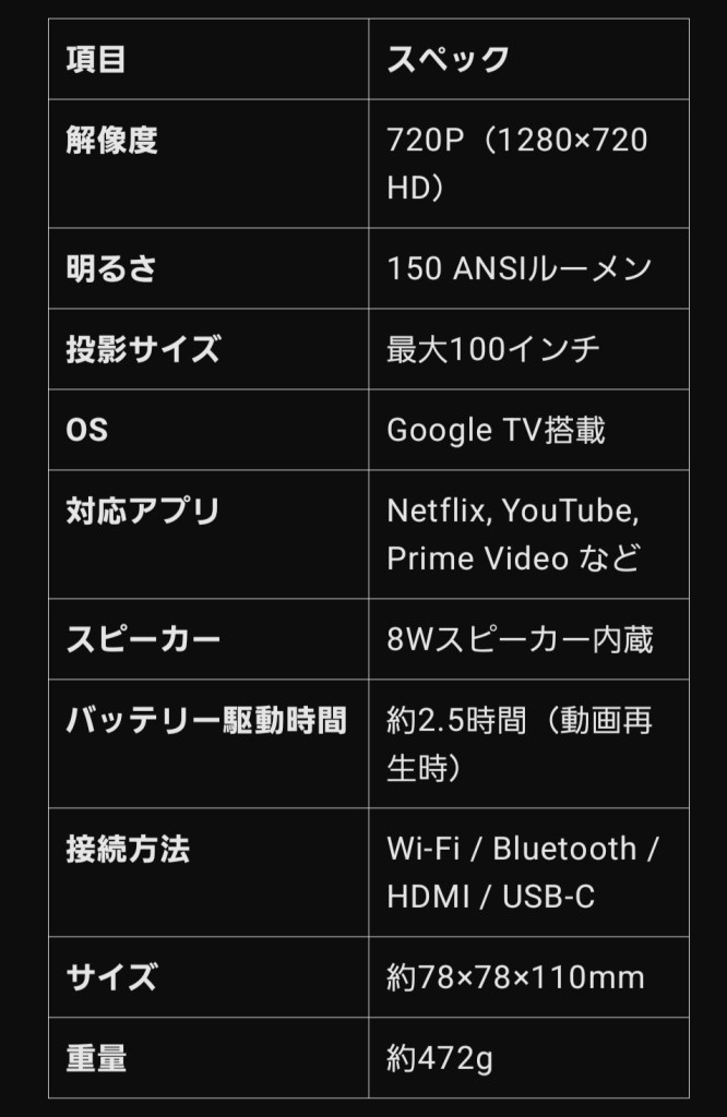 📽 世界最小クラスのGoogle TV搭載モバイルプロジェクター!
