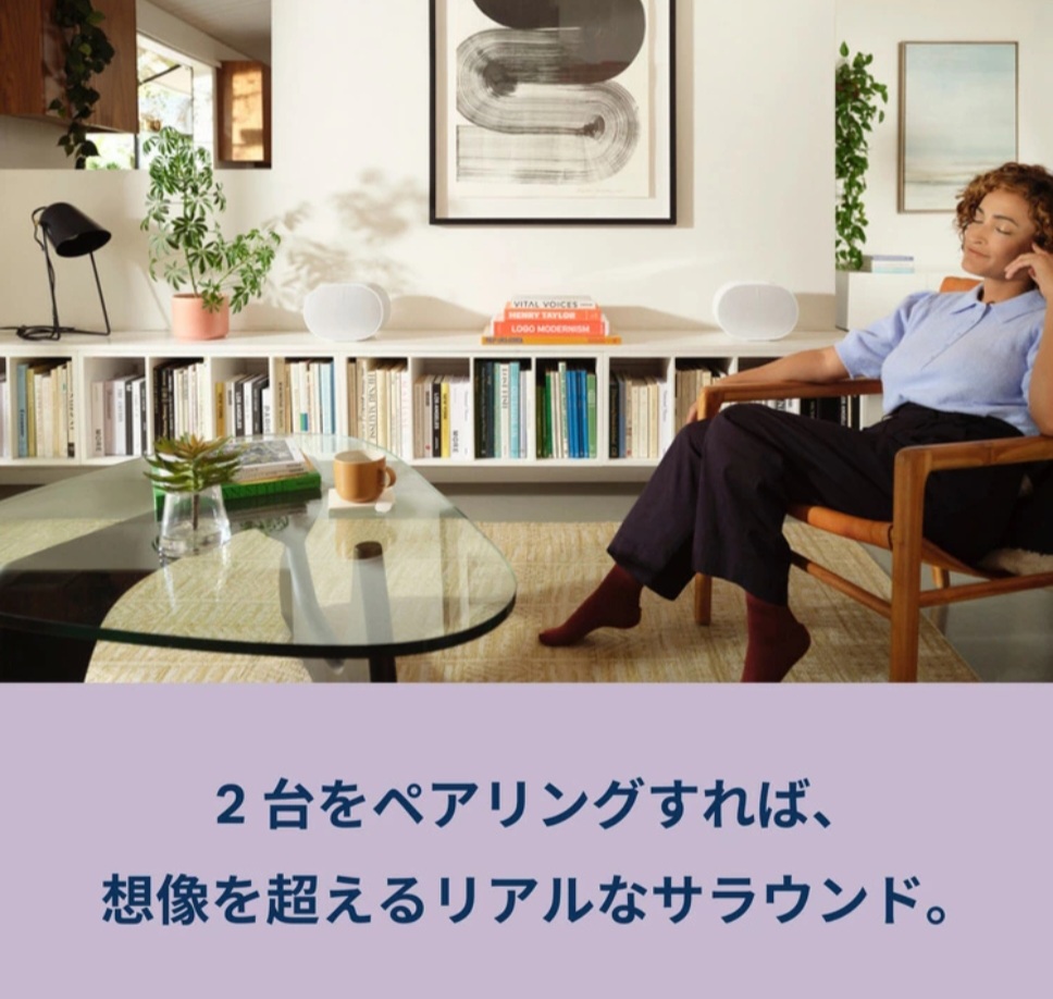 - 2台のEra 300をペアリングすると、より広がりのあるステレオサウンドを実現