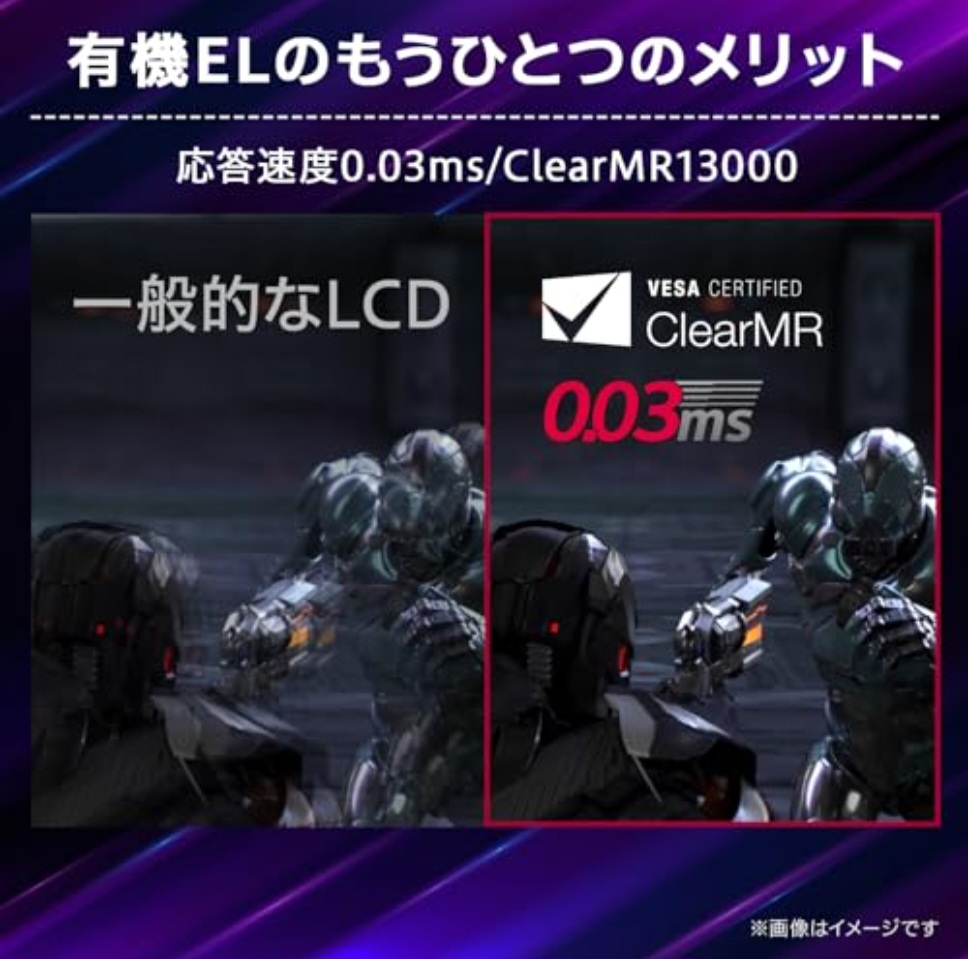 ✅ 応答速度:0.03ms(GTG) – 残像感ゼロでストレスフリー