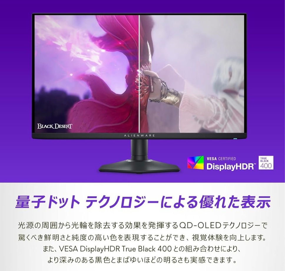 Dell AW2725DF 27インチ 有機EL Alienware ゲーミングモニター(3年間無輝点交換保証/QHD/QD-OLED/DP1.4×2,HDMI×1/DCI-P3 99.3% 価格:125400円 |