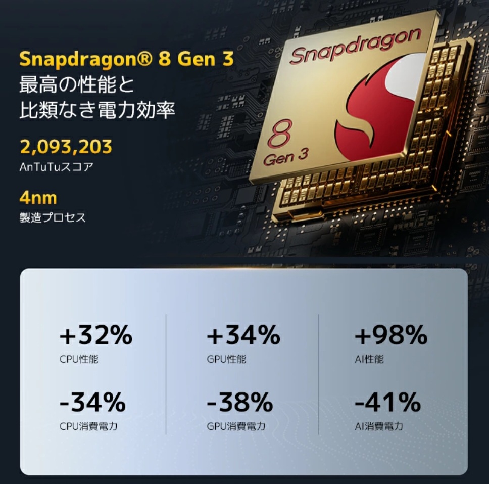 🚀 1. Snapdragon 8 Gen 3搭載 – AI機能強化でよりスマートに!