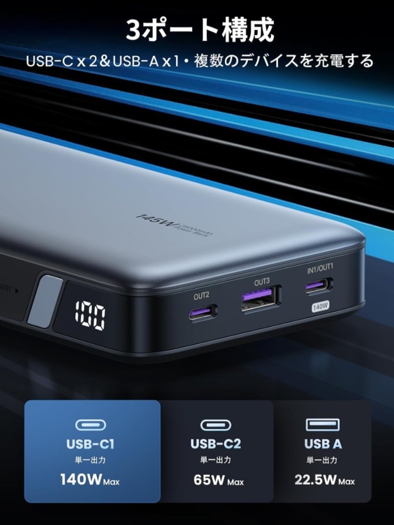 🔋 圧倒的パワー!25000mAh & 最大145W出力