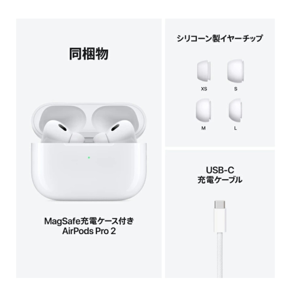 AirPods Pro 2は、音質・機能・利便性がさらに向上し、ワイヤレスイヤホンの最適解ともいえるモデルです。Appleユーザーなら間違いなく満足できる逸品です!