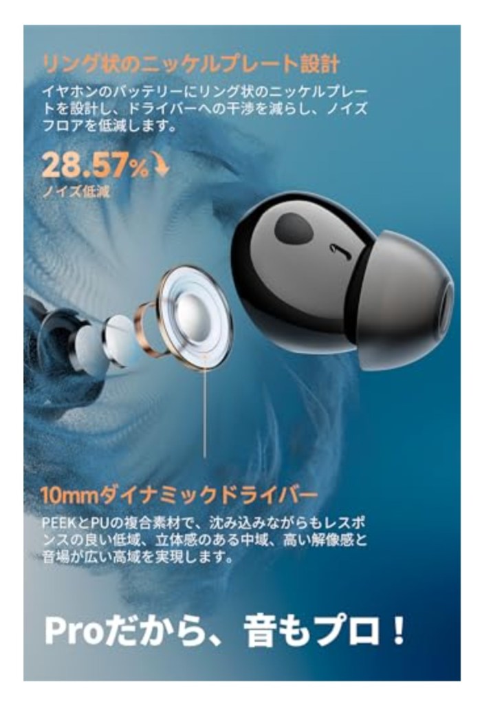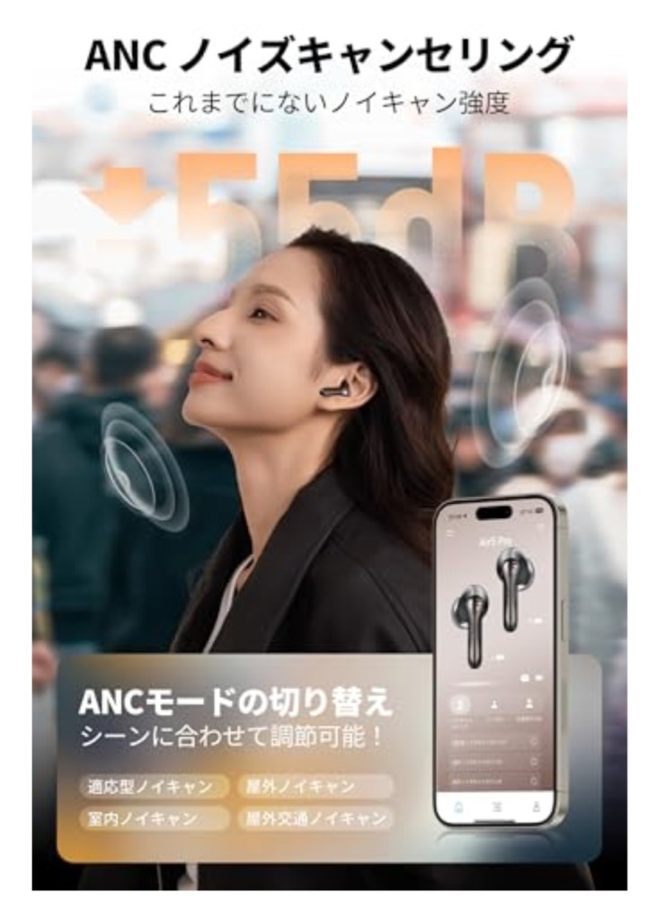 🔇 ハイブリッドANC搭載!騒がしい環境でも快適