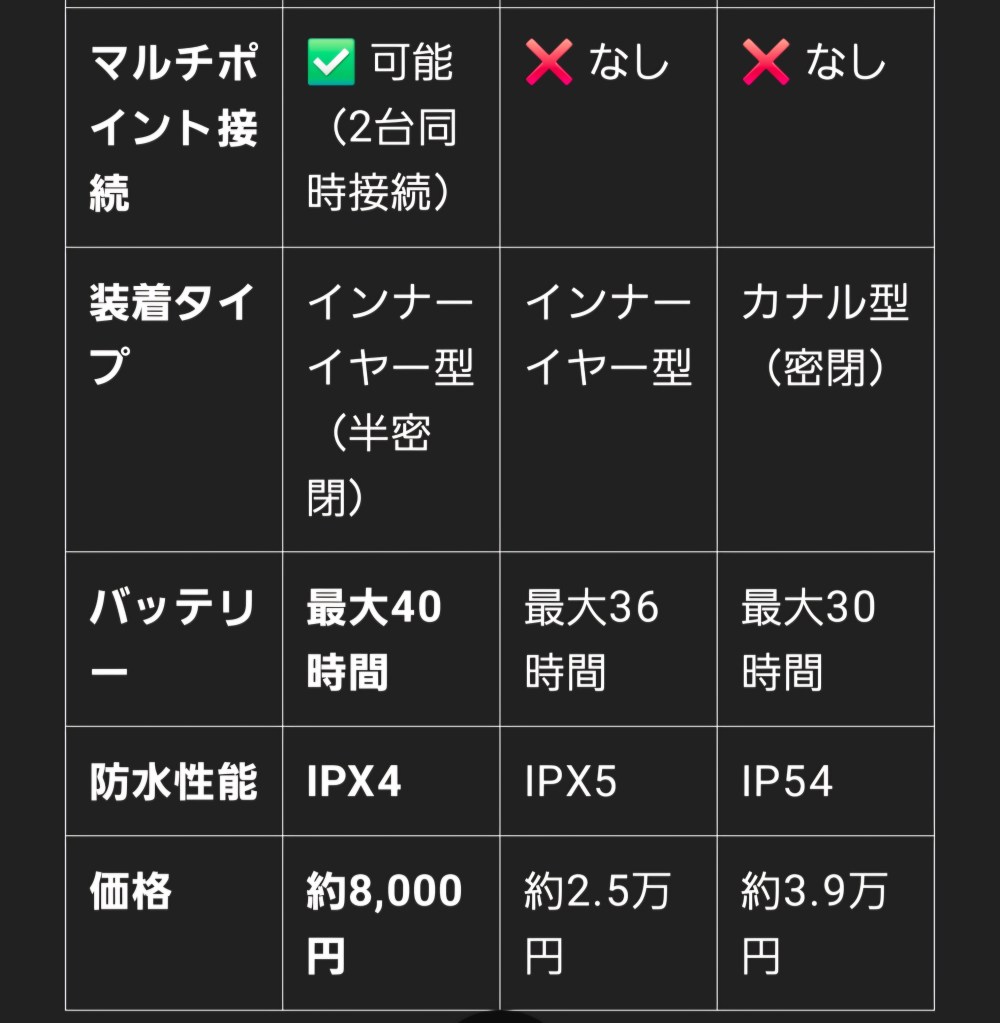 ✔️ マルチポイントで2台同時接続したい人(スマホとPCを切り替えられる)