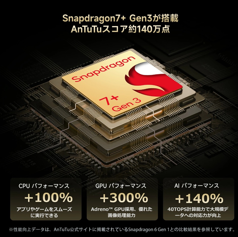 Snapdragon 7+ Gen3æèŒïŒãã€ãšã³ãã¯ã©ã¹ã®åŠçæ§èœã§å¿«é©åäœ