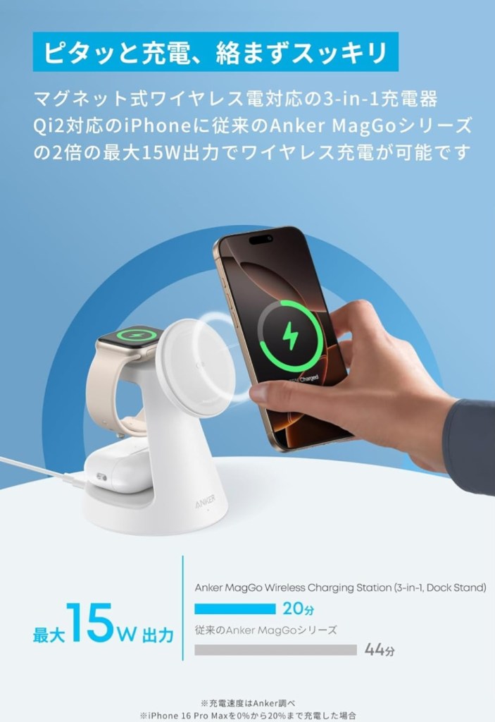 #AnkerMagGo #3in1充電器 #MagSafe充電器 #AppleWatch充電 #AirPods充電 #ワイヤレス充電 #ミニマルガジェット #旅行に便利 #デスク整理 #Appleユーザー必携