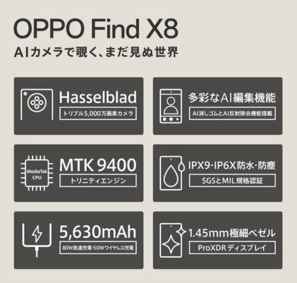 OPPOの最新フラッグシップスマホ「Find X8」が、すでに楽天市場で販売中です!