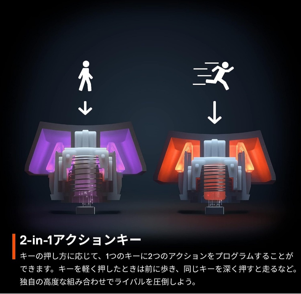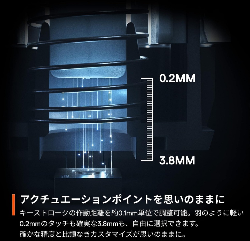 キーの押し込み具合で即座にON/OFFを切り替える「ラピッドトリガー」に対応。