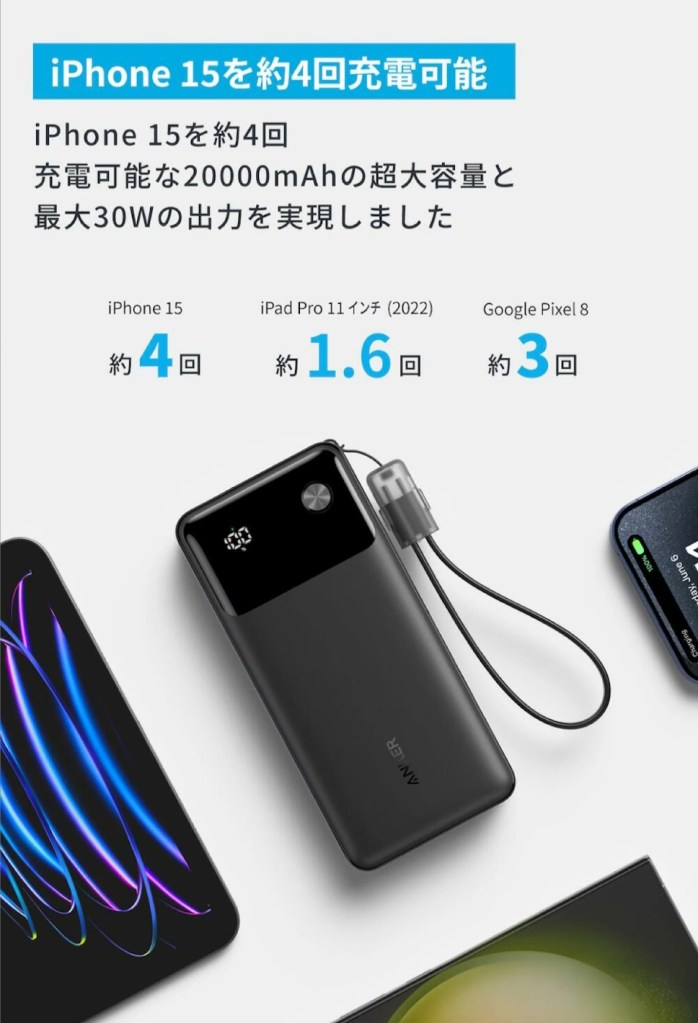#Anker #モバイルバッテリー #20000mAh #大容量バッテリー #AnkerPowerBank #ガジェット #防災グッズ #出張アイテム #旅行グッズ #ノートPC充電 #スマホ充電 #30W出力 #USB-C充電