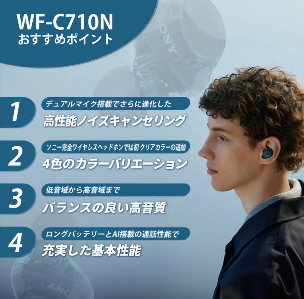 2024年発売のソニー WF-C710Nは、1万円台前半で買えるノイズキャンセリング搭載完全ワイヤレスイヤホン!