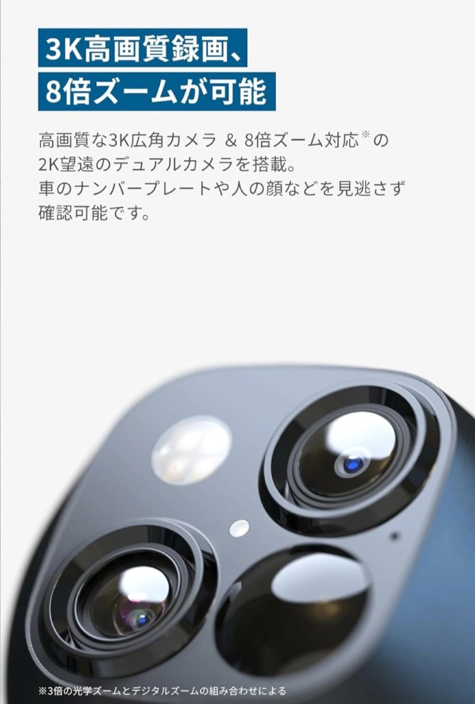 - 📸 2K高解像度+デュアルレンズでズームでもくっきり映像