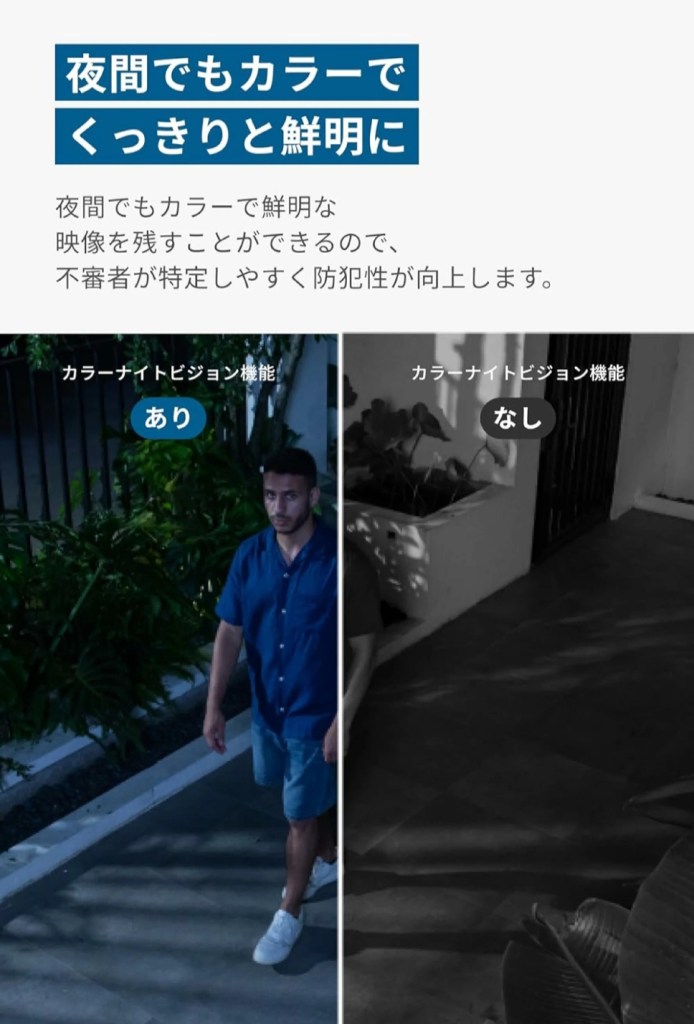 - 🌙 カラー暗視機能で夜間でもカラー映像を録画(これすごい見やすい)