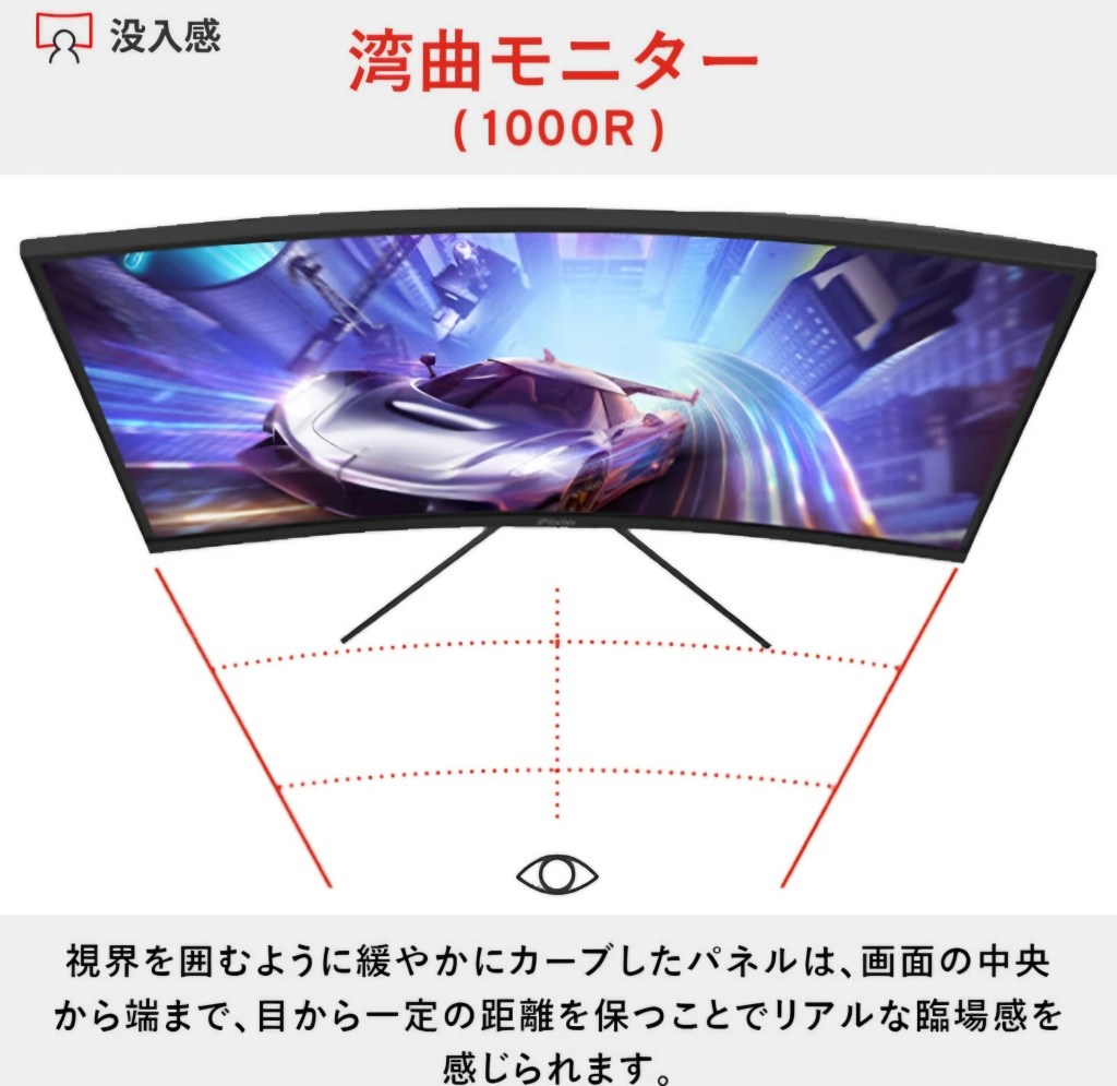 - 🌀 1500Rの湾曲ディスプレイで没入感がヤバい