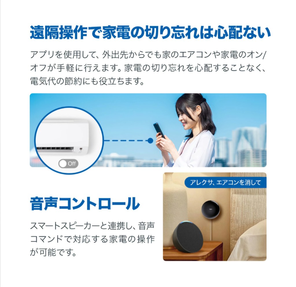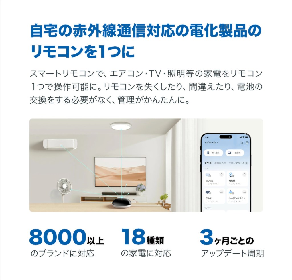赤外線リモコンを使うあらゆる家電(エアコン❄️、テレビ📺、照明💡)を