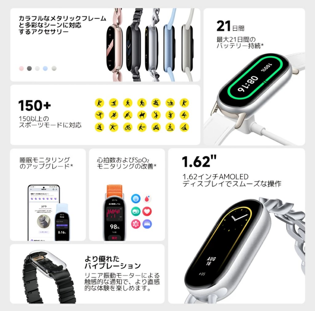 最新のスマートバンドをお探しですか?Xiaomiから登場した「Smart Band 9」は、1.62インチのAMOLEDディスプレイや150以上のスポーツモード、21日間のバッテリー持続など、魅力的な機能が満載です。この記事では、実際の使用感やスペックを詳しくご紹介します。