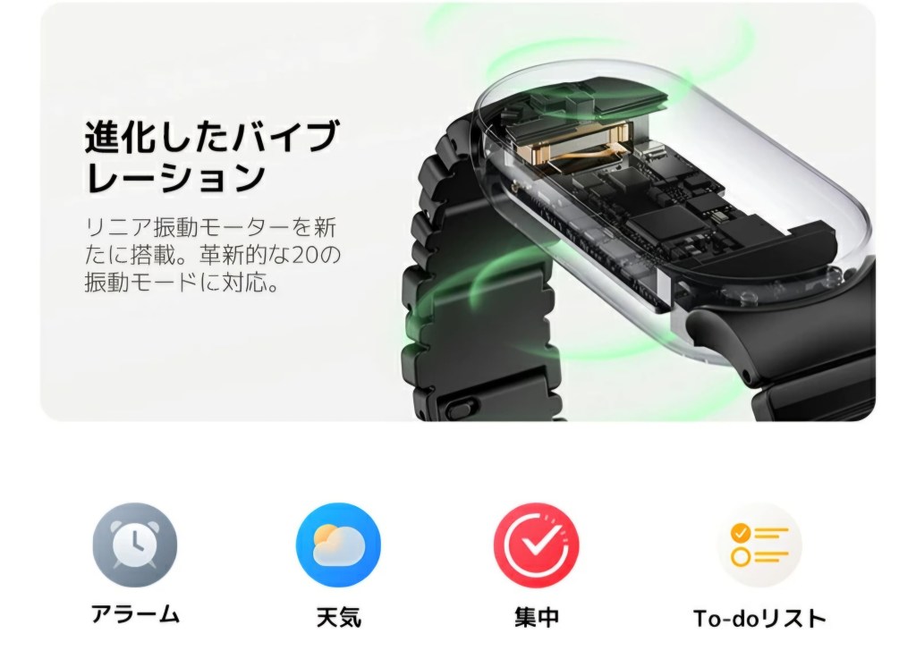 - 🖥️ ディスプレイ:1.62インチ AMOLED(解像度:192 × 490ピクセル、最大輝度1200nits)