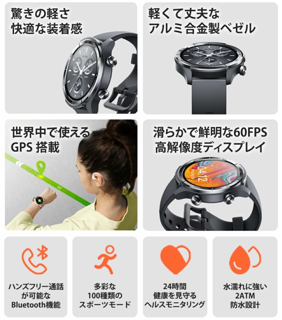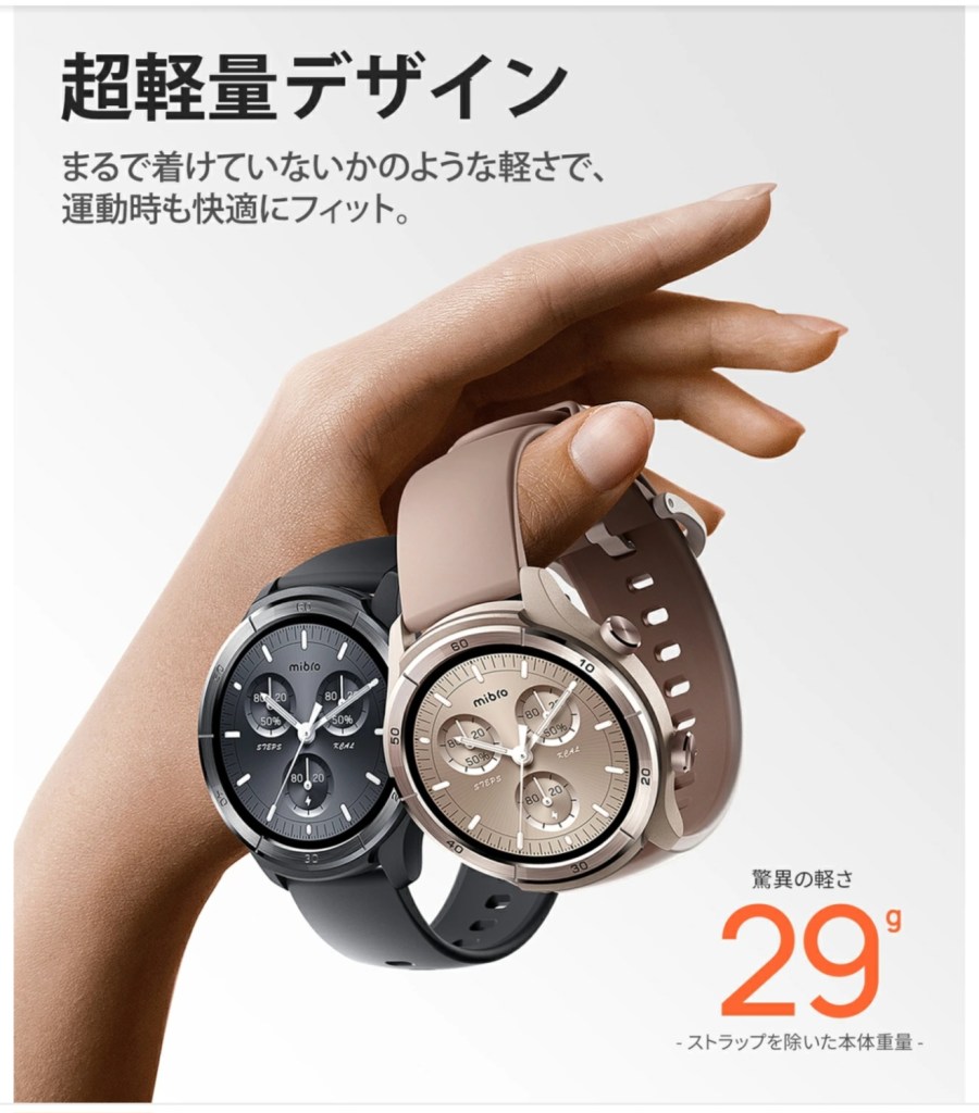 - ⚙️ アプリ連携:Mibro Fit(iOS/Android対応)