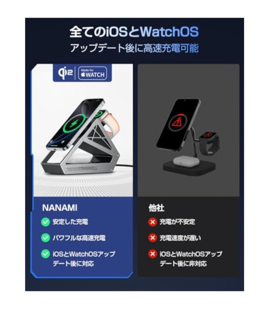 ð±ð #Qi2å é»åš #MagSafeå¯Ÿå¿ #iPhoneå é»ã¹ã¿ã³ã #AppleWatchå é»åš #NANAMIå é»åš #ã¹ããåšèŸºæ©åš #3in1ã¯ã€ã€ã¬ã¹å é»