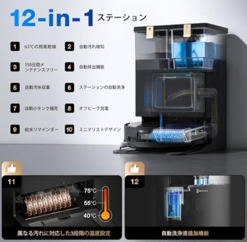 - 🌀 全自動OMNIステーション搭載:ゴミ収集・モップ洗浄・乾燥も自動化!