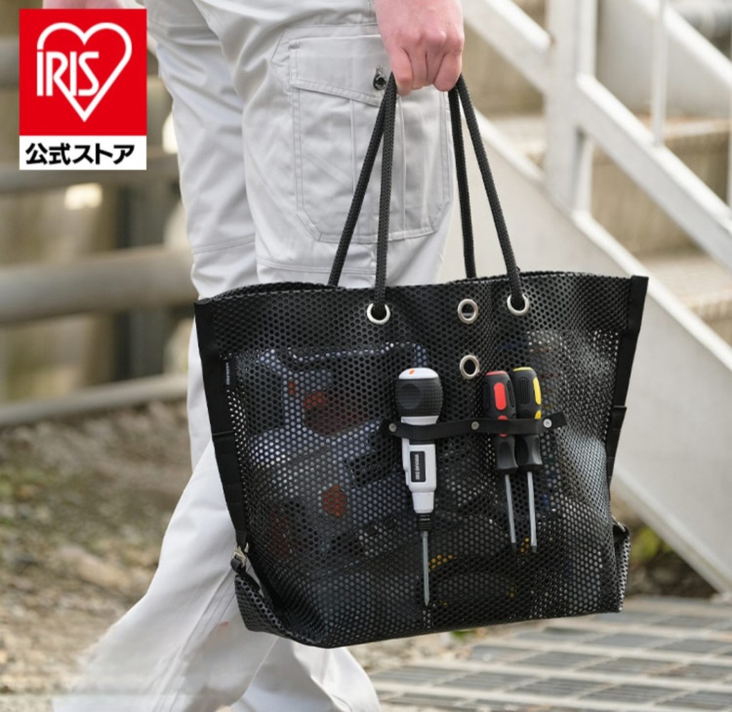 現場やDIYで「必要な道具がすぐ見つからない」を解決してくれるのが、アイリスオーヤマのメッシュツールバッグ TLB-M5241。軽くて自立、仕切りも豊富で、濡れ物も乾きやすい“見える収納”が魅力です。