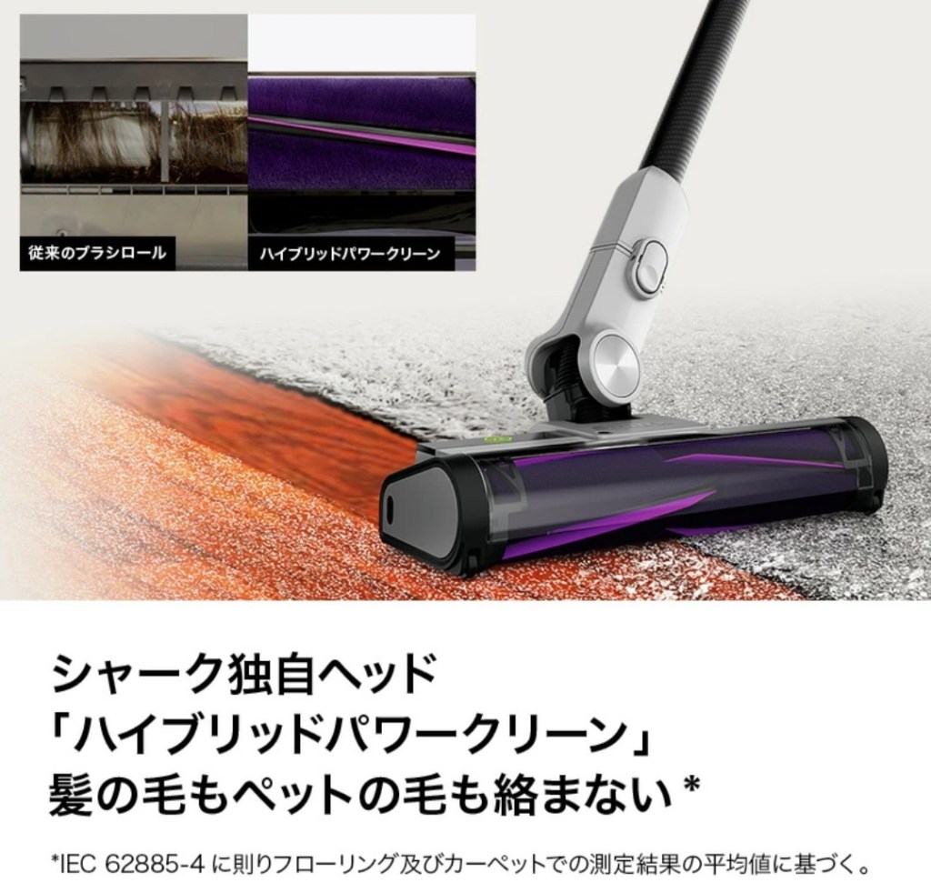 - Sharkらしいパワフルな吸引力で、フローリングもカーペットも安心