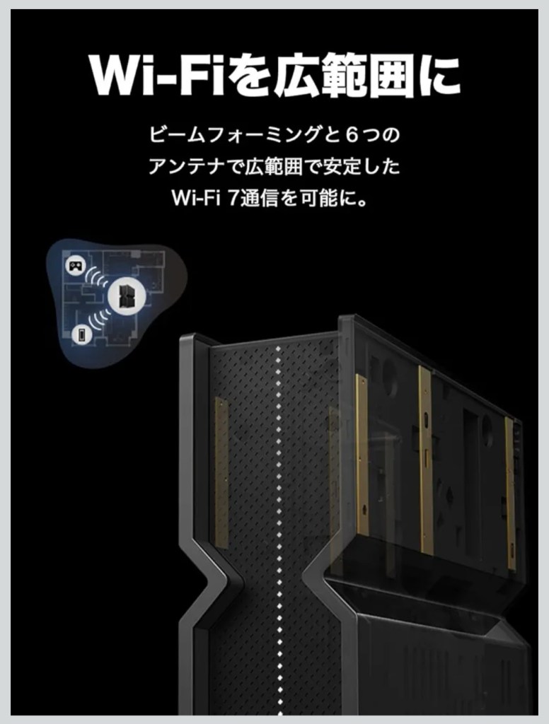 アンテナてんこ盛りのフラッグシップ機に比べると、価格は抑えめで必要十分な機能をしっかり押さえたミドル〜ミドルハイな立ち位置。 「最高級まではいらないけど、ちゃんと速くて強いWi-Fi 7が欲しい」人にハマります。