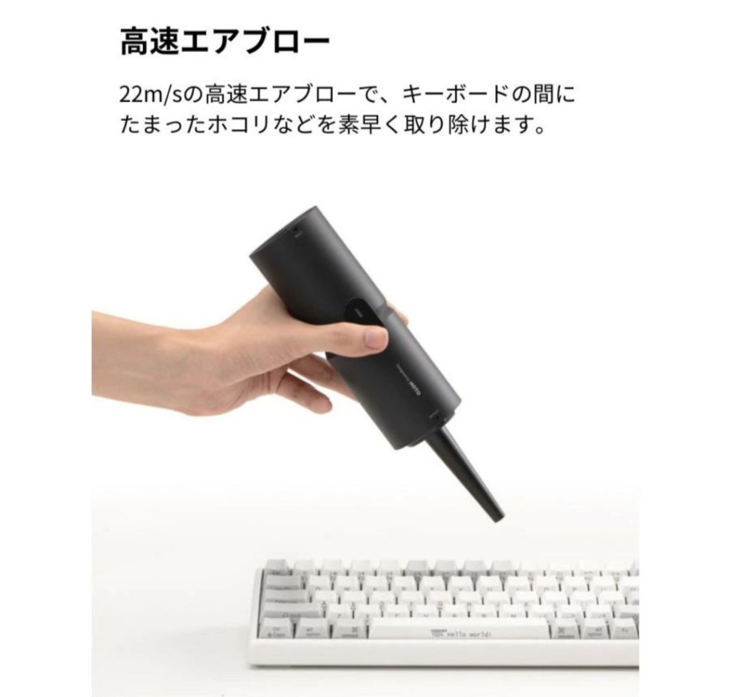 - ✅ 22m/s 高速エアブローで、キーボードや隙間のホコリ飛ばしに強い