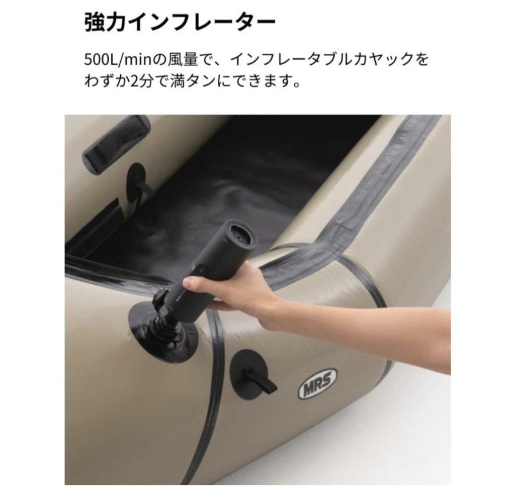 - ✅ 500L/min インフレーターで、浮き輪・エアクッション等にも対応しやすい