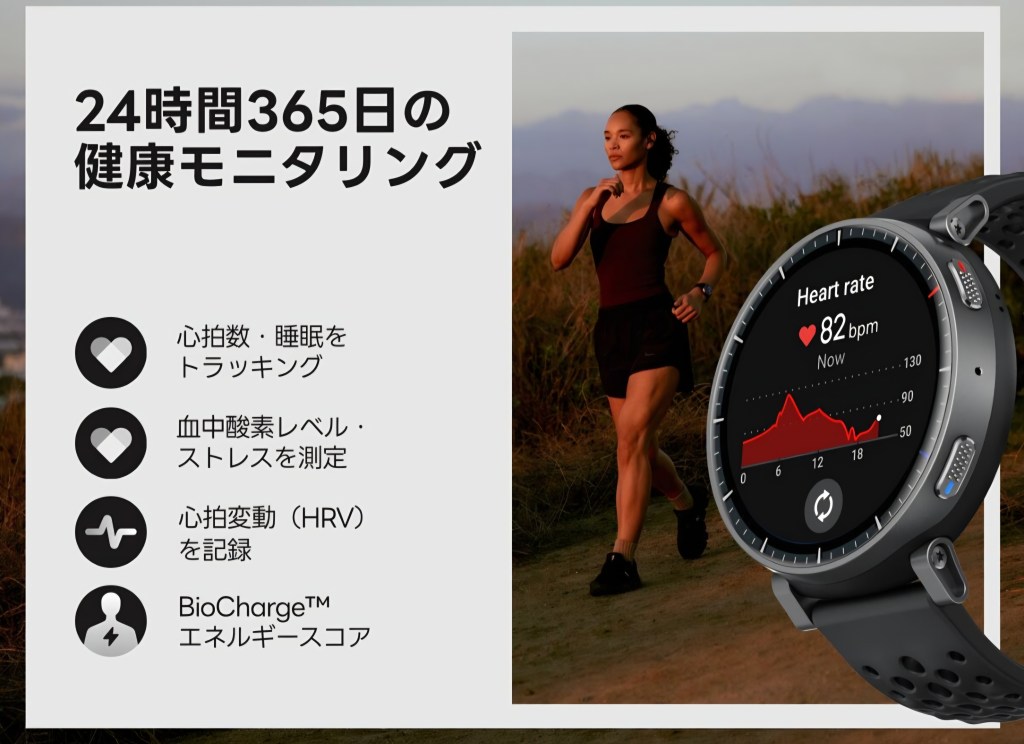 | 健康系 | 心拍 / 睡眠 / 運動管理(スポーツモード) |